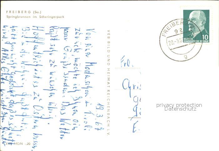 72368429 alte Postkarte Freiberg Sachsen Springbrunnen Scheringerpark postalisch gelaufen Erhaltung siehe scans KatCode: 11110014177150
