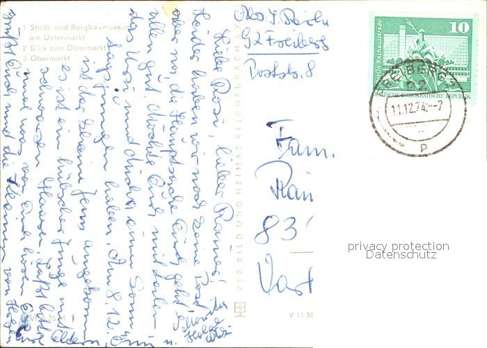 72374494 alte Postkarte Freiberg Sachsen Untermarkt Museum Obermarkt postalisch gelaufen Erhaltung siehe scans KatCode: 11110014177150