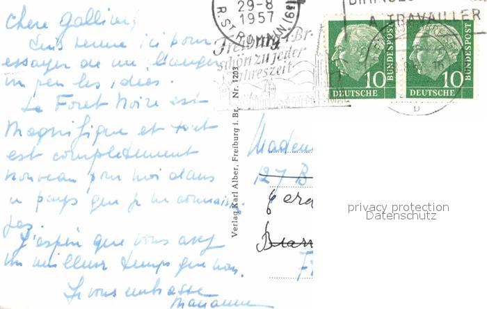 72743829 alte Postkarte Freiburg Breisgau postalisch gelaufen Erhaltung siehe scans [LiesaD40] KatCode: 11110008311000