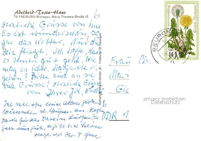 73335438 alte Postkarte Freiburg Breisgau Adelheid Testa Haus postalisch gelaufen Erhaltung siehe scans [FriedD77] KatCode: 11110008311000