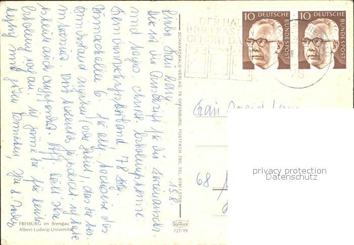 72053893 alte Postkarte Freiburg Breisgau Albert Ludwig Universitaet postalisch gelaufen Erhaltung siehe scans KatCode: 11110008311000