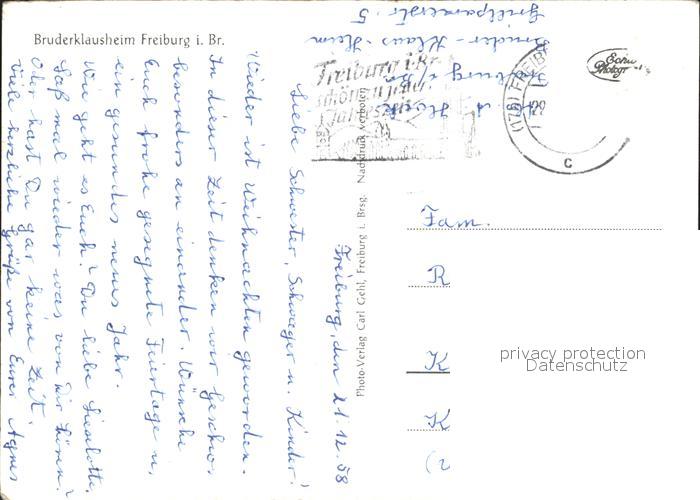 32152801 alte Postkarte Freiburg Breisgau Bruderklausheim postalisch gelaufen Erhaltung siehe scans KatCode: 11110008311000