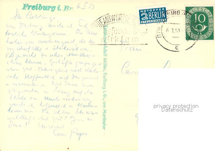 73767805 alte Postkarte Freiburg Breisgau Brunnen Stadtzentrum Muenster im Winter postalisch gelaufen Erhaltung siehe scans [FriedD77] KatCode: 11110008311000