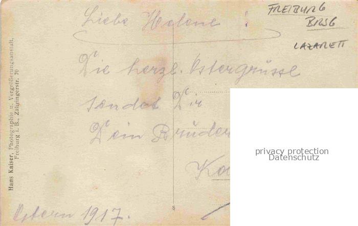 74025707 FREIBURG Breisgau BW Lazarett postalisch nicht gelaufen Erhaltung siehe scans [WerneD78] KatCode: 11110008311000
