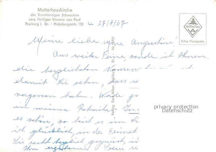 74024708 FREIBURG Breisgau BW Mutterhauskirche der Barmherzigen Schwestern vom Heiligen Vinzenz von Paul postalisch nicht gelaufen Erhaltung siehe scans [FriedD77] KatCode: 11110008311000