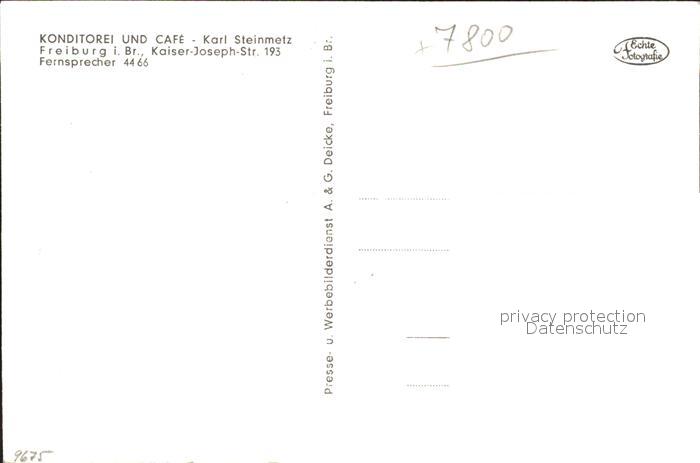 31734873 Freiburg Breisgau Cafe Konditorei Karl Steinmetz postalisch nicht gelaufen Erhaltung siehe scans KatCode: 11110008311000
