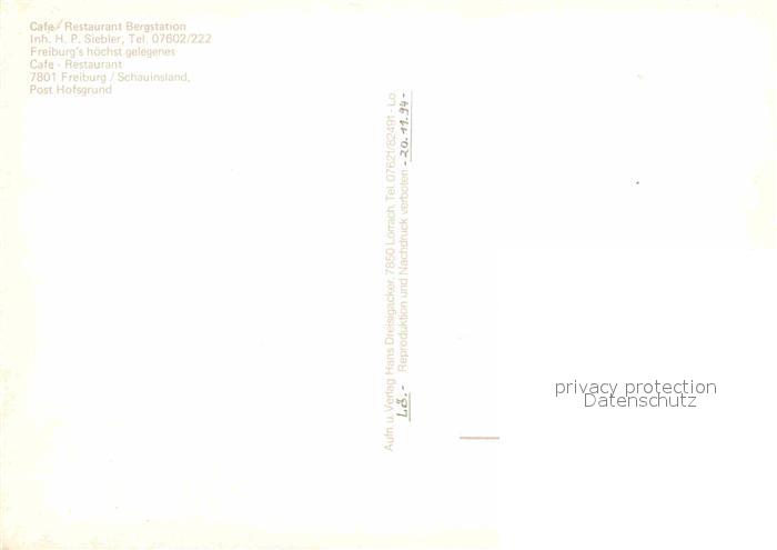 72842363 Freiburg Breisgau Cafe-Restaurant-Bergstation Schauinsland postalisch nicht gelaufen Erhaltung siehe scans [PaolaD17] KatCode: 11110008311000