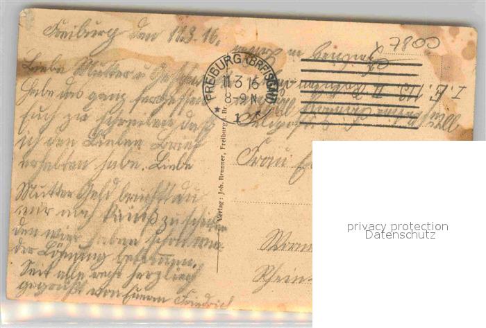 42808029 alte Postkarte Freiburg Breisgau Carls Kaserne Siegesenkmal postalisch gelaufen Erhaltung siehe scans [AndreD76] KatCode: 11110008311000