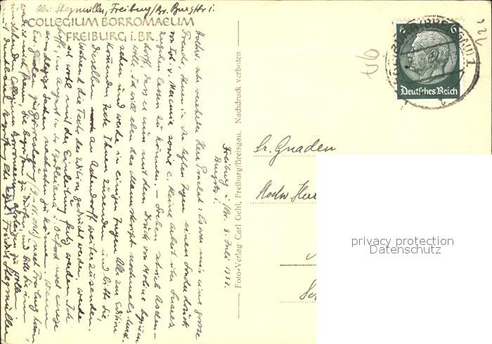 71832034 alte Postkarte Freiburg Breisgau Collegium Borromaeum postalisch gelaufen Erhaltung siehe scans KatCode: 11110008311000