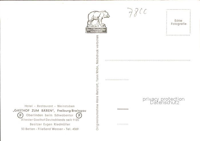 41581289 Freiburg Breisgau Ebringer Sommerberg Baerenwirt postalisch nicht gelaufen Handschriftliches Kürzel auf Karte Erhaltung siehe scans KatCode: 11110008311000