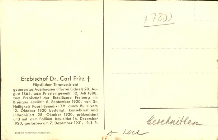 41345700 Freiburg Breisgau Erzbischof Dr Carl Fritz KatCode 11110008311000