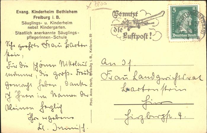 41346465 Freiburg Breisgau Evang. Kinderheim Bethlehem S?uglingsheim KatCode 11110008311000