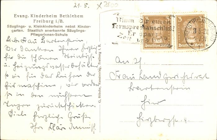 41346463 alte Postkarte Freiburg Breisgau Evang. Kinderheim Bethlehem postalisch gelaufen gute Erhaltung KatCode: 11110008311000