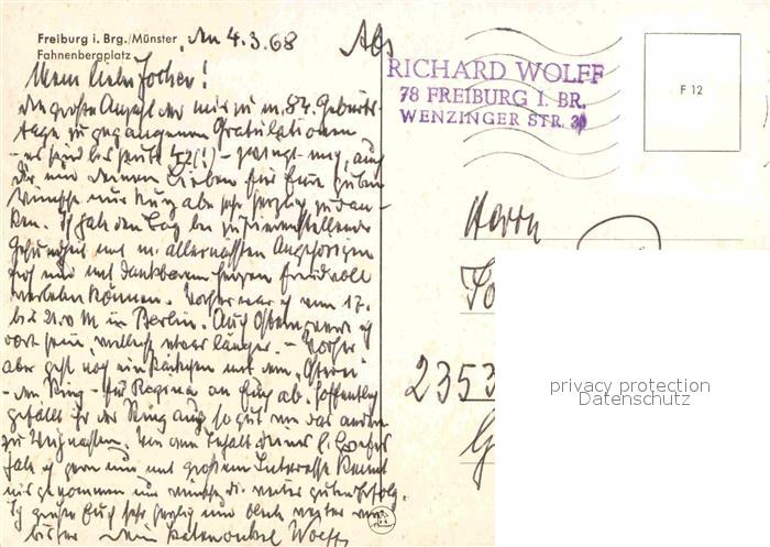 72907020 alte Postkarte Freiburg Breisgau Fahnenbergplatz Muenster postalisch gelaufen Erhaltung siehe scans [FriedD77] KatCode: 11110008311000