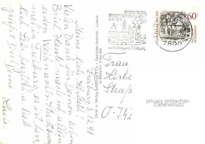 72856428 alte Postkarte Freiburg Breisgau Fischbrunnen Kornhaus Blumenmarkt Histor Kaufhaus postalisch gelaufen Erhaltung siehe scans [WerneD78] KatCode: 11110008311000