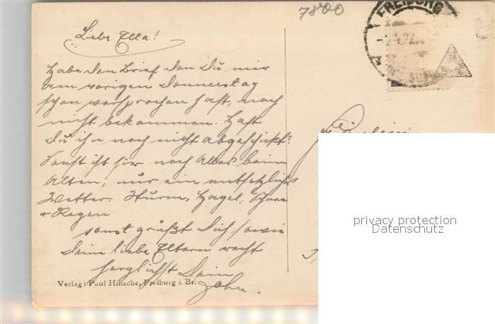 43348735 alte Postkarte Freiburg Breisgau Fischerau postalisch gelaufen Erhaltung siehe scans [KathaD81] KatCode: 11110008311000