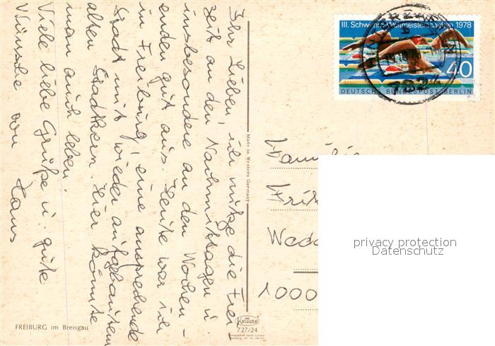 73543524 alte Postkarte Freiburg Breisgau Fliegeraufnahme postalisch gelaufen Erhaltung siehe scans [WerneD78] KatCode: 11110008311000