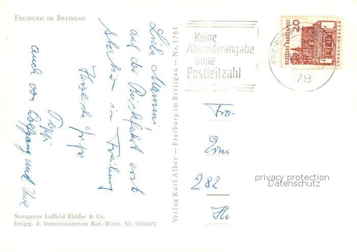 73123355 alte Postkarte Freiburg Breisgau Fliegeraufnahme postalisch gelaufen Erhaltung siehe scans [KathaD81] KatCode: 11110008311000