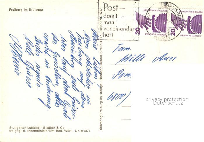 73045265 alte Postkarte Freiburg Breisgau Fliegeraufnahme postalisch gelaufen Erhaltung siehe scans [WerneD78] KatCode: 11110008311000