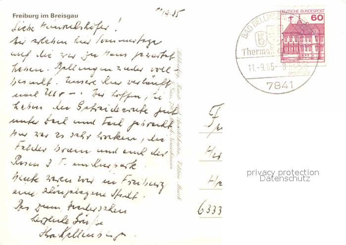 72915974 alte Postkarte Freiburg Breisgau Fliegeraufnahme postalisch gelaufen Erhaltung siehe scans [LiesaD40] KatCode: 11110008311000