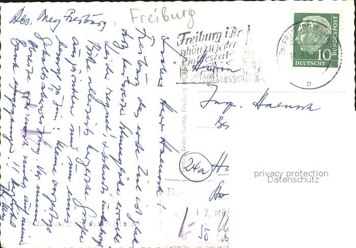 72586628 alte Postkarte Freiburg Breisgau Fliegeraufnahme postalisch gelaufen Erhaltung siehe scans [AndreD76] KatCode: 11110008311000