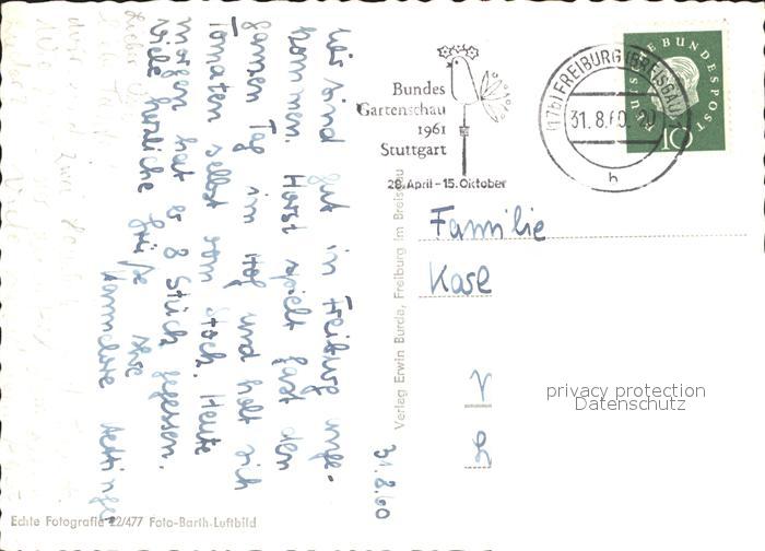 71832134 alte Postkarte Freiburg Breisgau Fliegeraufnahme Teilansicht postalisch gelaufen KatCode: 11110008311000