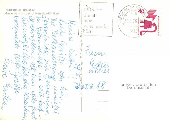 72846741 alte Postkarte Freiburg Breisgau Fliegeraufnahme Universitaetskliniken postalisch gelaufen Erhaltung siehe scans [KathaD81] KatCode: 11110008311000