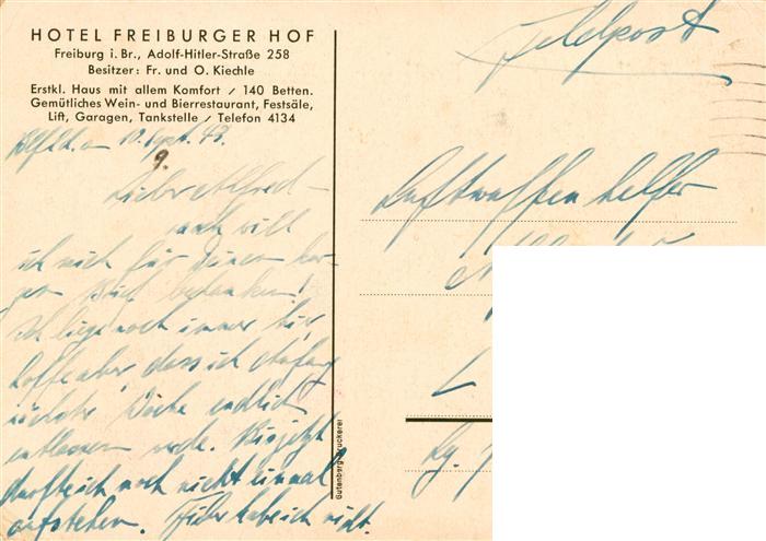 73873316 alte Postkarte Freiburg Breisgau Freiburger Hof Martinstor postalisch gelaufen Erhaltung siehe scans [WerneD78] KatCode: 11110008311000