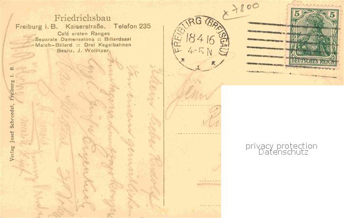 42879173 alte Postkarte Freiburg Breisgau Friedrichsbau postalisch gelaufen Erhaltung siehe scans [NatalD47] KatCode: 11110008311000