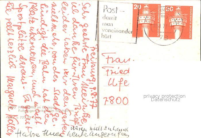 71832076 alte Postkarte Freiburg Breisgau Fussgaengerbruecke Stadtgarten postalisch gelaufen Erhaltung siehe scans KatCode: 11110008311000