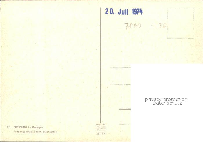 71832075 Freiburg Breisgau Fussgaengerbruecke Stadtgarten postalisch nicht gelaufen Erhaltung siehe scans KatCode: 11110008311000