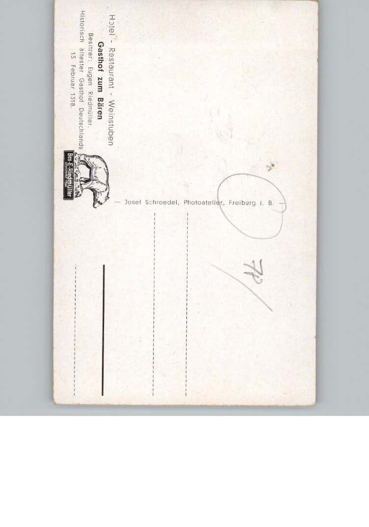 31152634 Freiburg Breisgau Gasthof zum Baeren postalisch nicht gelaufen KatCode: 11110008311000