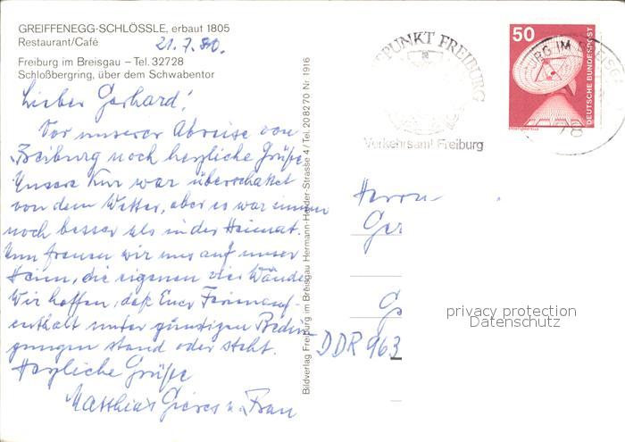 72455117 alte Postkarte Freiburg Breisgau Greiffenberg Schloessle postalisch gelaufen Erhaltung siehe scans KatCode: 11110008311000