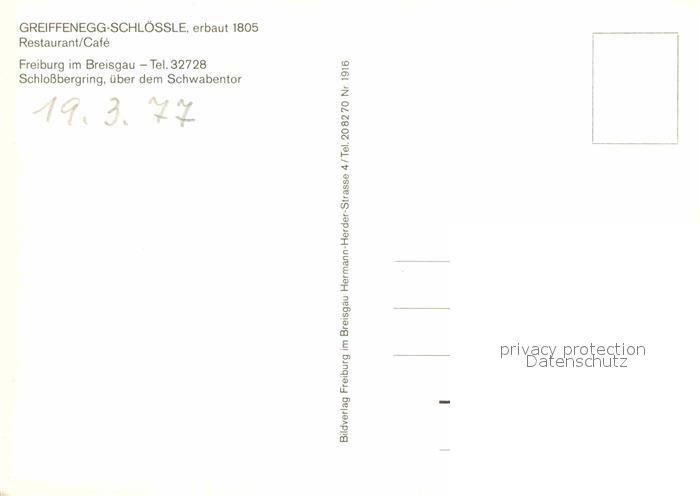 72707927 Freiburg Breisgau Greiffenegg Schloessle Restaurant Cafe postalisch nicht gelaufen Erhaltung siehe scans [WerneD78] KatCode: 11110008311000