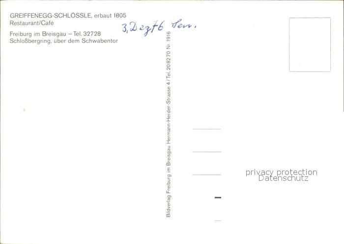 72581532 Freiburg Breisgau Greiffenegg-Schloessle postalisch nicht gelaufen Erhaltung siehe scans [AndreD76] KatCode: 11110008311000