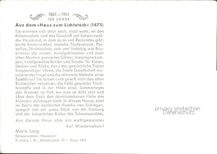72449650 Freiburg Breisgau Haus zum Lichtstock Maria Lang postalisch nicht gelaufen Erhaltung siehe scans KatCode: 11110008311000