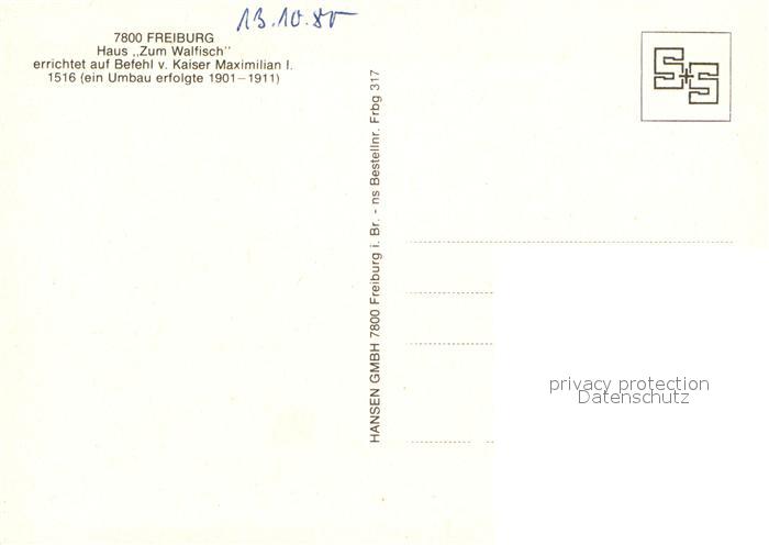 73016408 Freiburg Breisgau Haus Zum Walfisch Relief Kaiser Maximilian I postalisch nicht gelaufen Erhaltung siehe scans [NatalD47] KatCode: 11110008311000