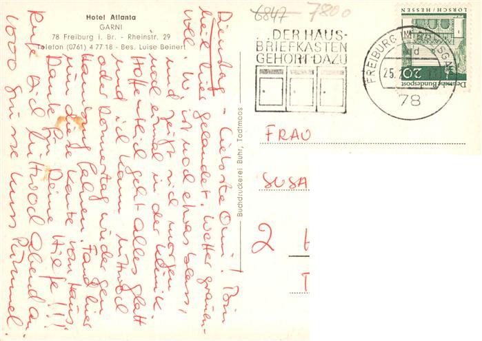 73943806 alte Postkarte Freiburg Breisgau Hotel Atlanta Garni postalisch gelaufen Erhaltung siehe scans [WerneD78] KatCode: 11110008311000