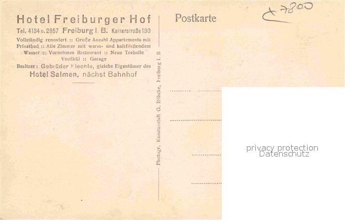 42879189 Freiburg Breisgau Hotel Freiburger Hof postalisch nicht gelaufen Erhaltung siehe scans [NatalD47] Nata Katcode 11110008311000
