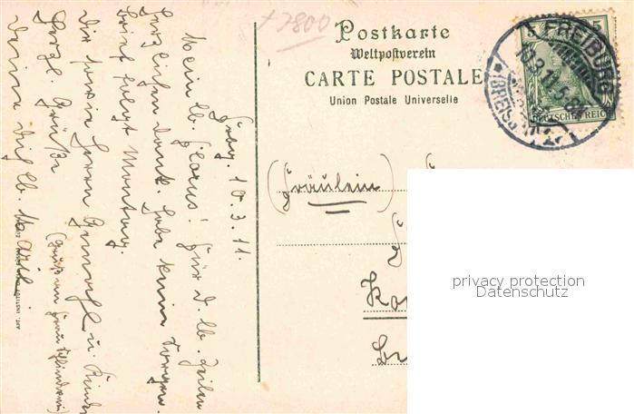 42879193 alte Postkarte Freiburg Breisgau Hotel National postalisch gelaufen Erhaltung siehe scans [NatalD47] KatCode: 11110008311000