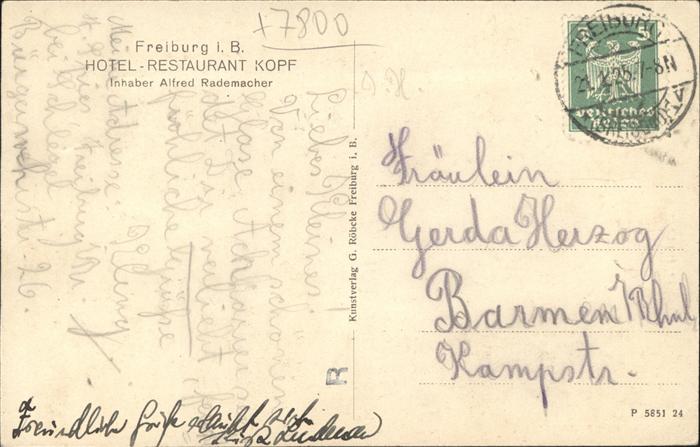 41211199 Freiburg Breisgau Hotel Restaurant Kopf Garten KatCode 11110008311000