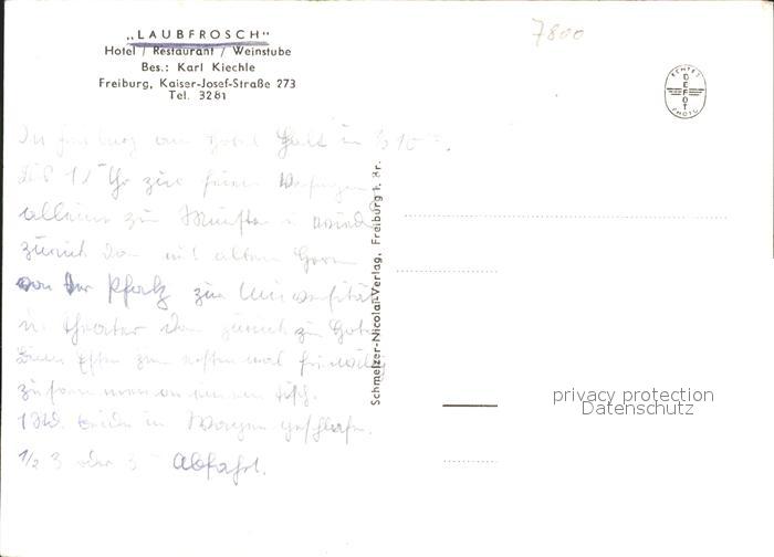 31708454 Freiburg Breisgau Hotel Restaurant Laubfrosch Kaiser Josef Strasse postalisch nicht gelaufen Erhaltung siehe scans KatCode: 11110008311000