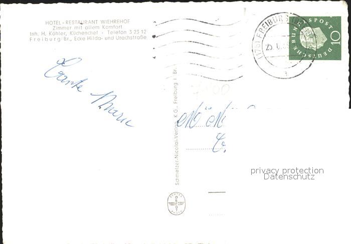 31715245 alte Postkarte Freiburg Breisgau Hotel Restaurant Wiehrhof postalisch gelaufen Erhaltung siehe scans KatCode: 11110008311000