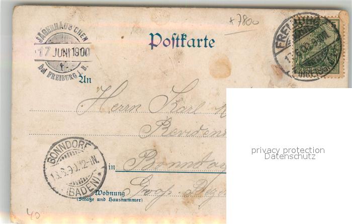 43301352 alte Postkarte Freiburg Breisgau Jaegerhaus mit Rosskopfthurm postalisch gelaufen Erhaltung siehe scans [WerneD78] KatCode: 11110008311000