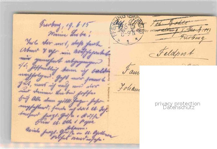 42661705 alte Postkarte Freiburg Breisgau Jesukirche Stuehlinger Schulhaus postalisch gelaufen Feldpost Erhaltung siehe scans [KathaD79] KatCode: 11110008311000