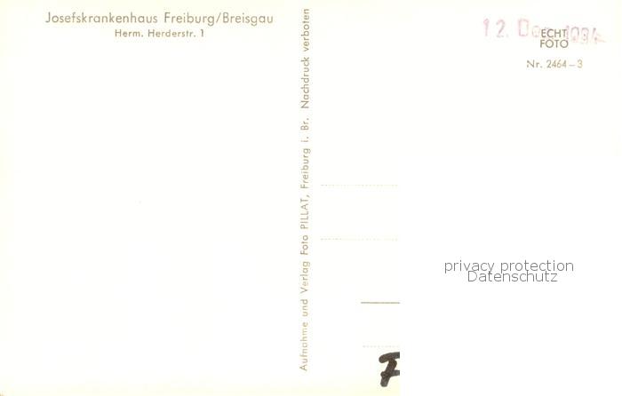 73763665 Freiburg Breisgau Josefskrankenhaus postalisch nicht gelaufen Erhaltung siehe scans [FriedD77] KatCode: 11110008311000