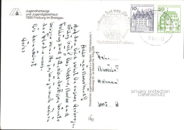 71993187 alte Postkarte Freiburg Breisgau Jugendherberge postalisch gelaufen Erhaltung siehe scans KatCode: 11110008311000