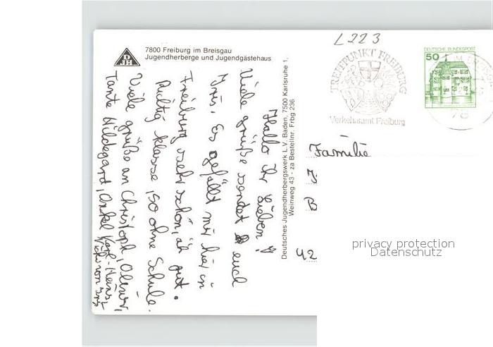 71942789 alte Postkarte Freiburg Breisgau Jugendherberge und Jugendgasthaus postalisch gelaufen KatCode: 11110008311000