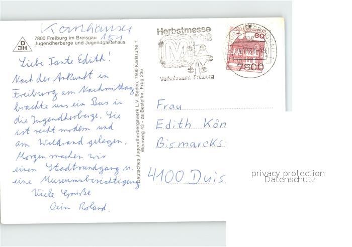 72359809 alte Postkarte Freiburg Breisgau Jungenherberge und Jugendgasthaus postalisch gelaufen Erhaltung siehe scans KatCode: 11110008311000