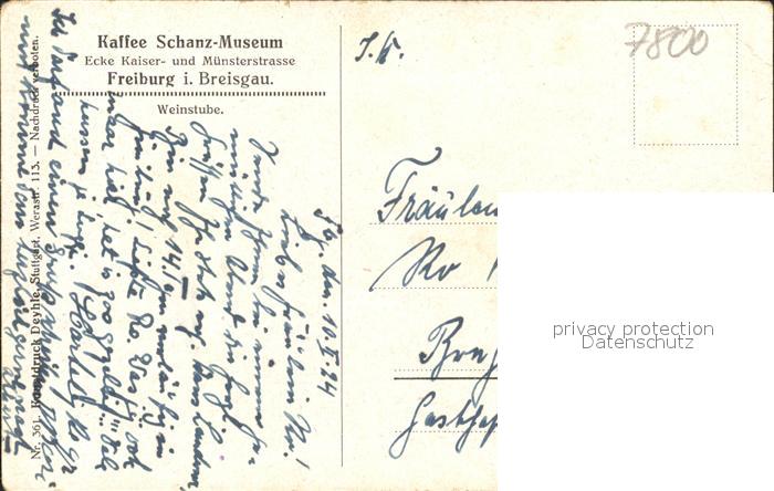 31729475 Freiburg Breisgau Kaffe Schanz-Museum Weinstube postalisch nicht gelaufen Erhaltung siehe scans KatCode: 11110008311000